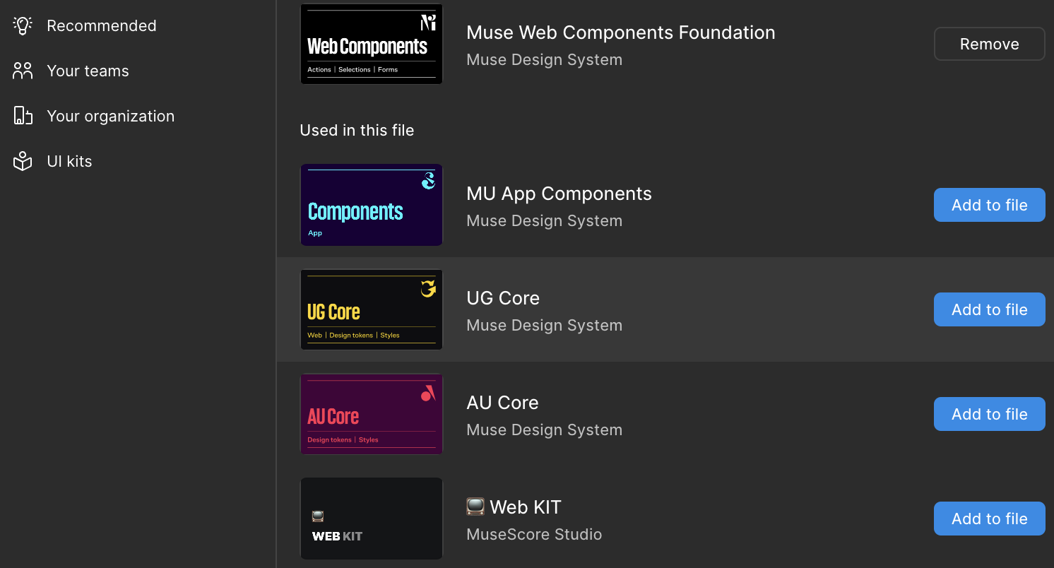 To begin working, you need to add three libraries to your Figma file: the product core library, the component library, and the icons library. Links to all libraries are provided above.
