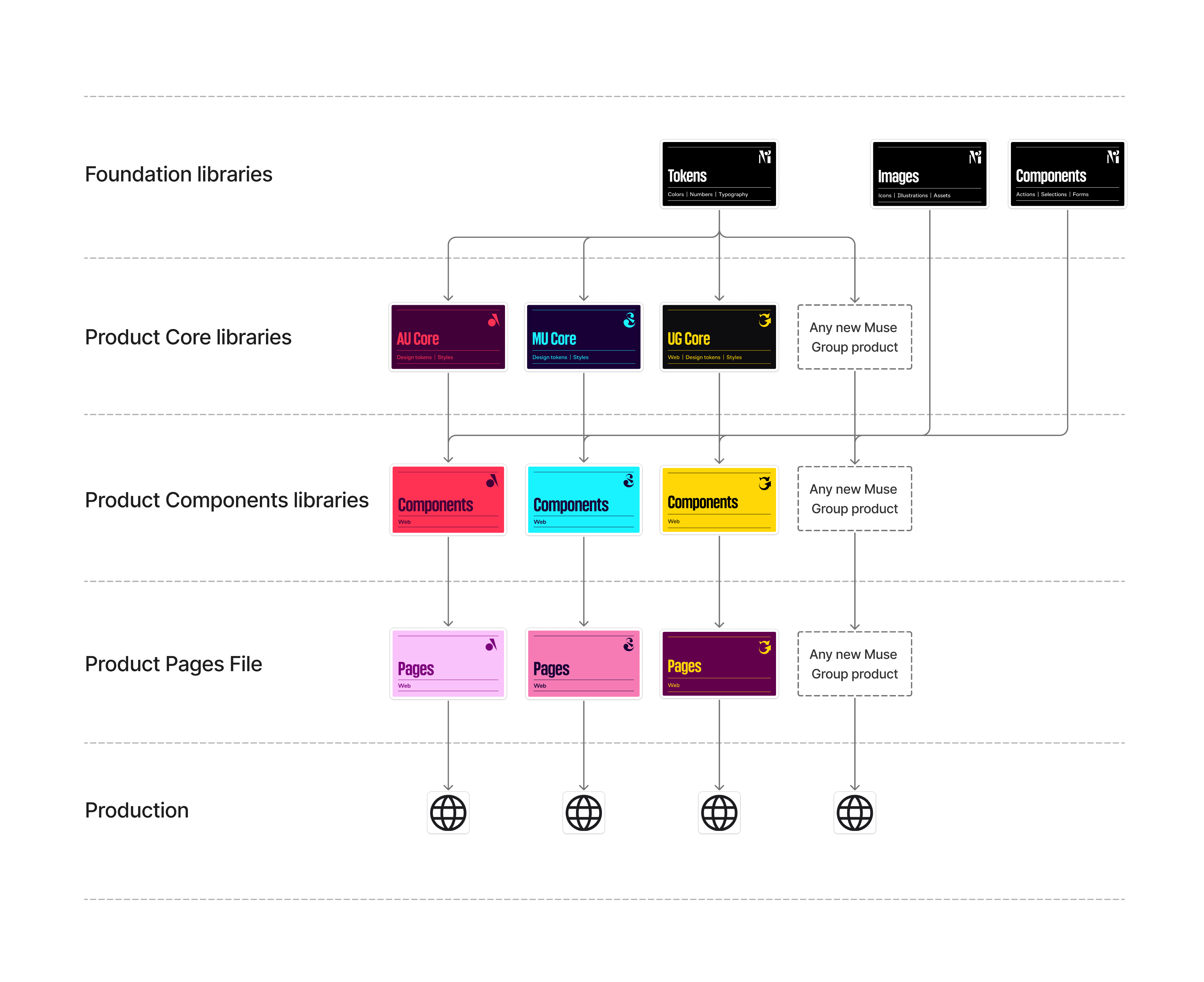 The structure of Figma projects and files in our company is intentional, shaped by our experience and the needs of our products. Design files and libraries can be categorized into types.